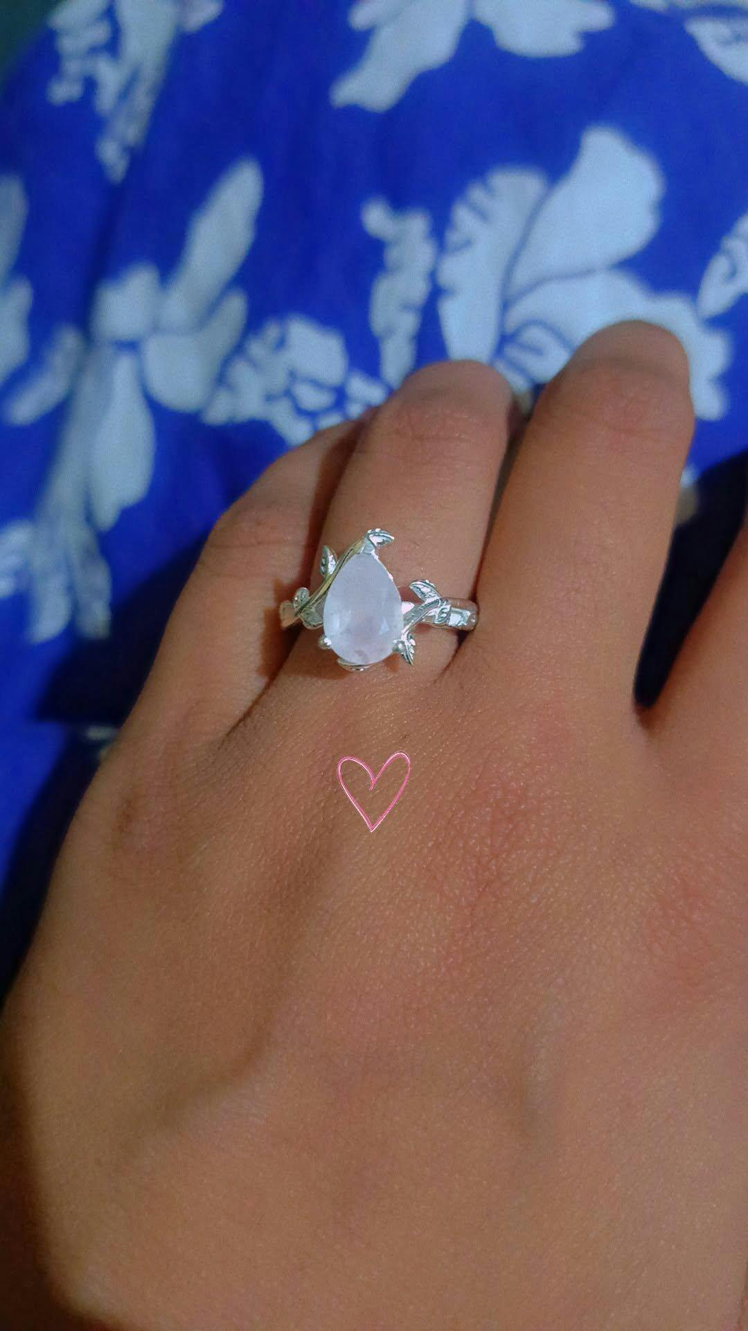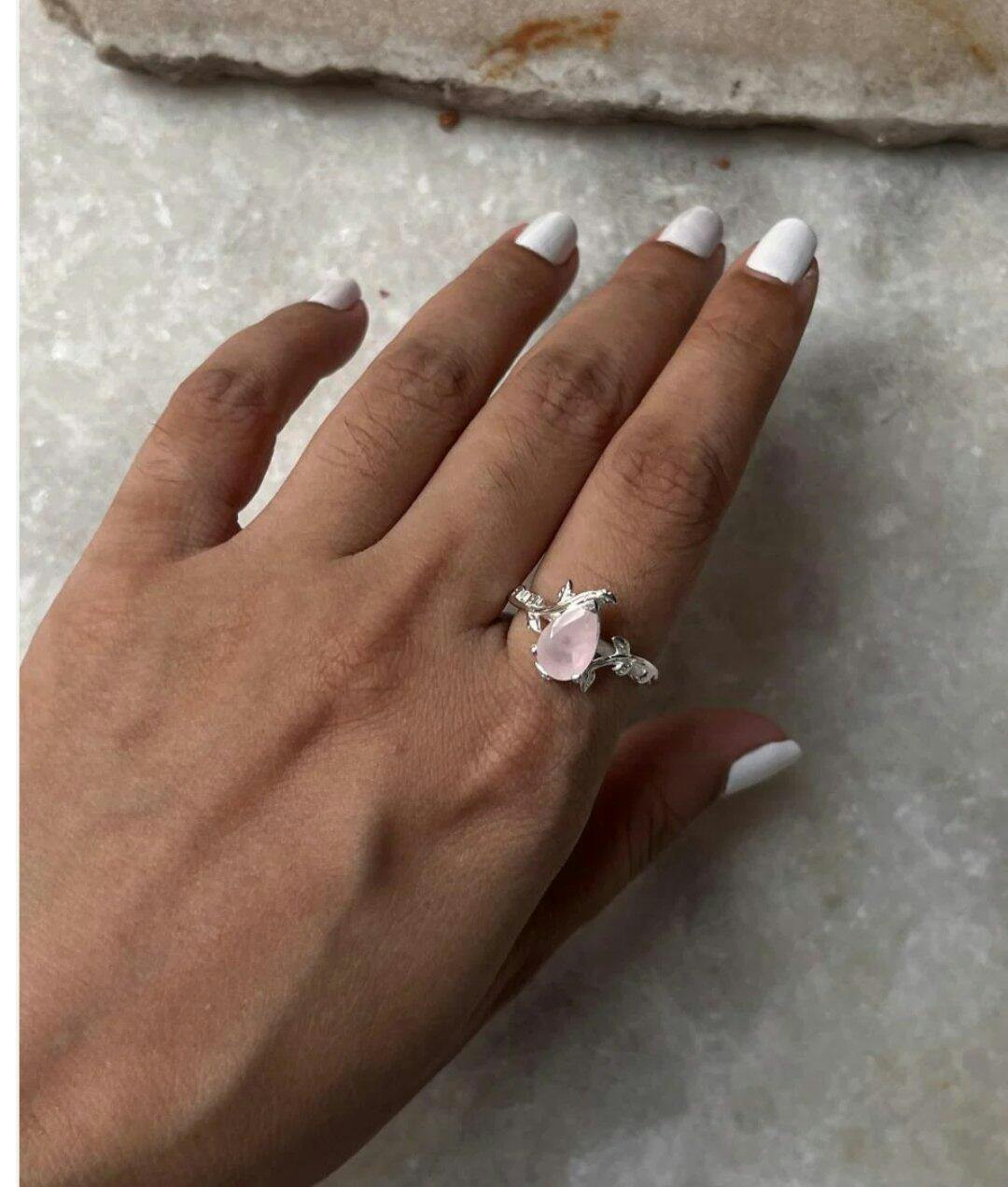 A graceful design inspired by nature, this ring showcases a soft rose quartz pear-shaped stone embraced by a leaf-detailed band in 925 sterling silver. Symbolizing love, compassion, and new beginnings, it's a beautiful piece for everyday wear or special moments.