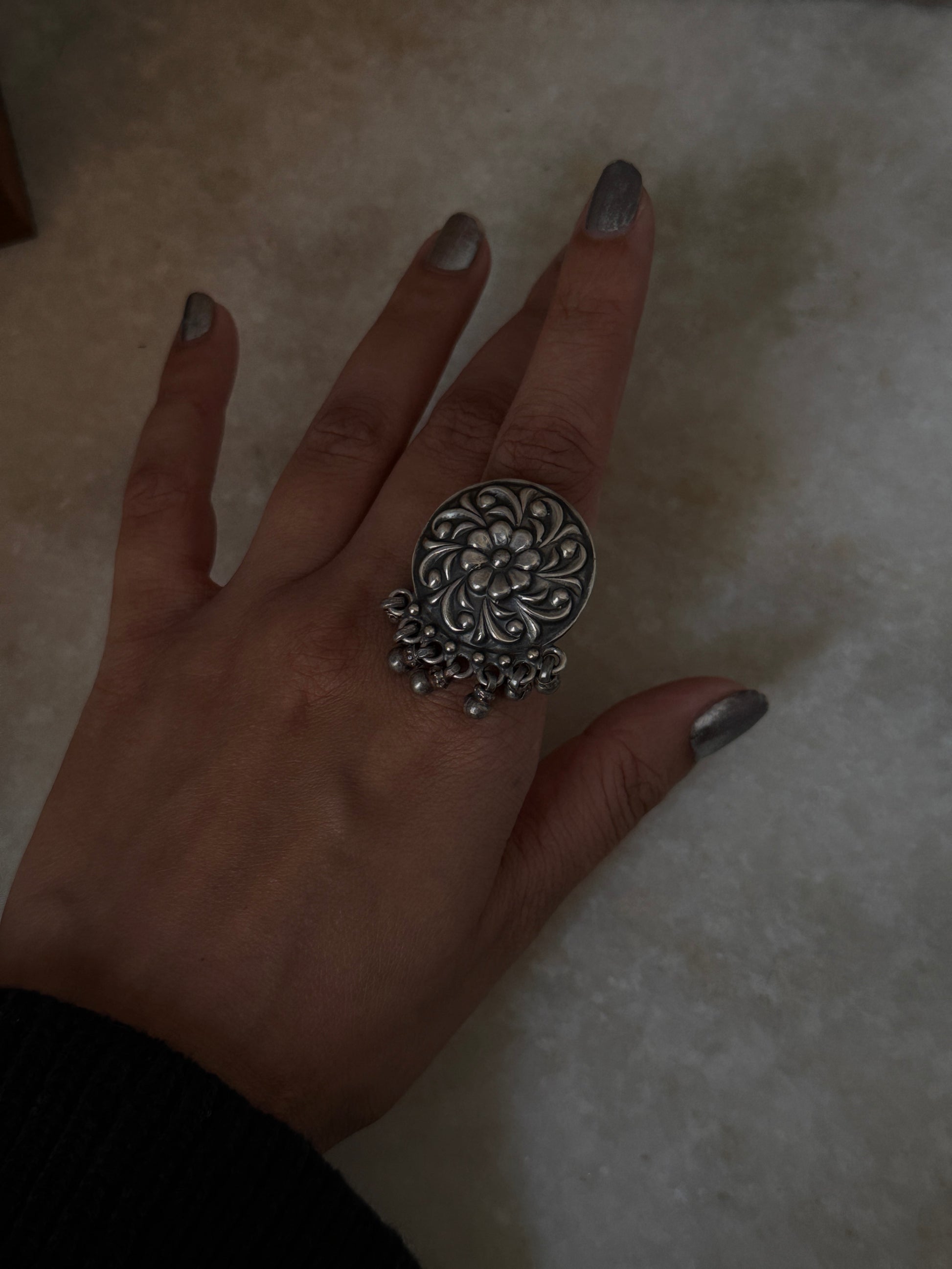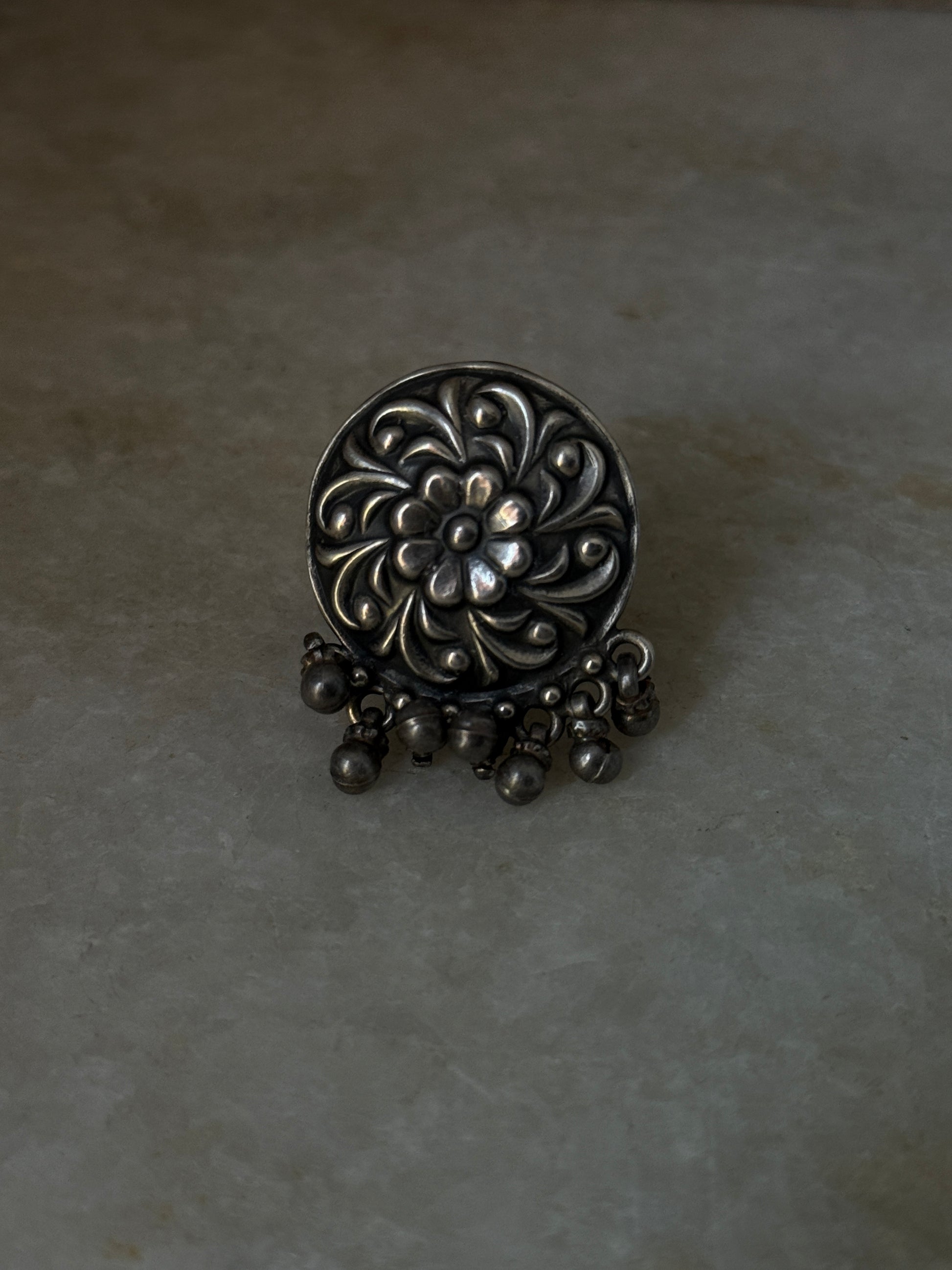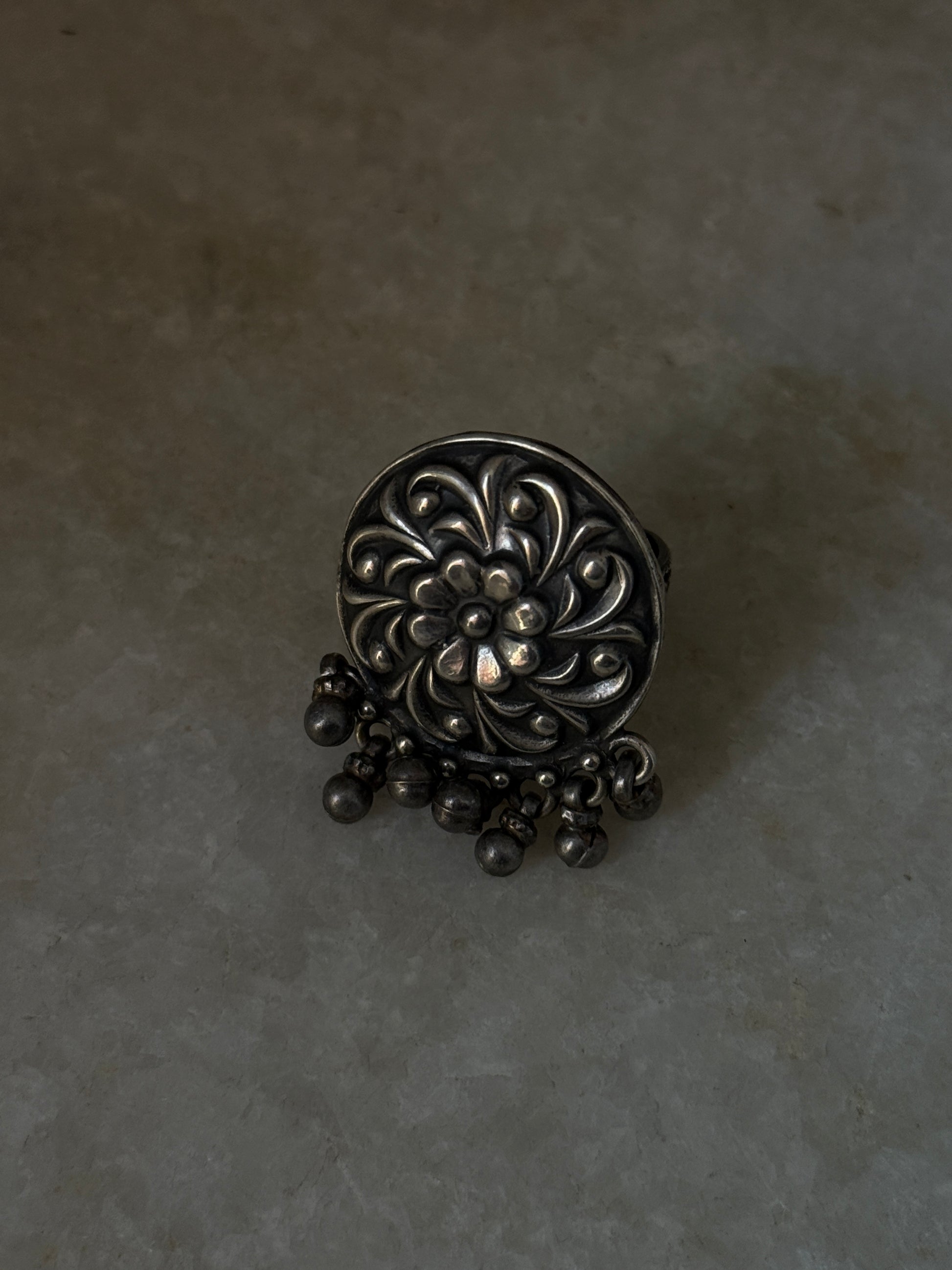 Antique Boho Ghungroo Flower 925 Sterling Silver Ring