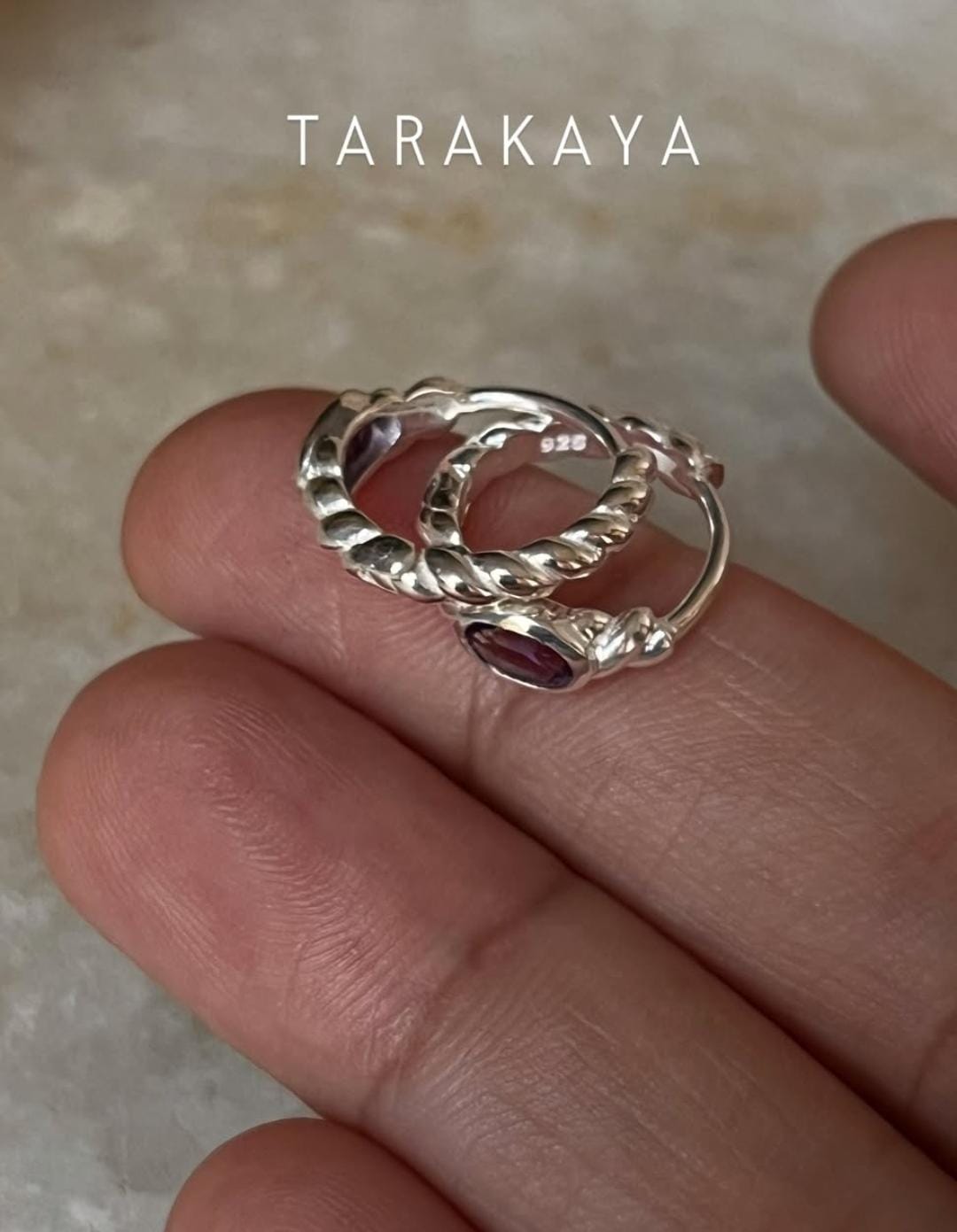Silver Amethyst Croissant Huggies 925 Sterling Silver Earrings