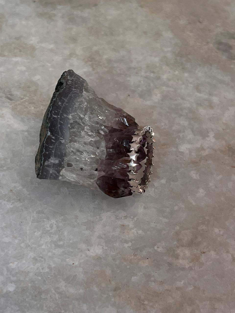 A small star band ring symbolizes guidance, aspiration, and the light of hope. The Small Star Band 925 Sterling Silver Ring is a delicate and charming piece featuring tiny star motifs around a slim sterling silver band. Symbolizing hope, guidance, and inspiration, this ring adds a subtle sparkle to everyday wear—perfect for those who love minimalist jewelry with meaningful details.