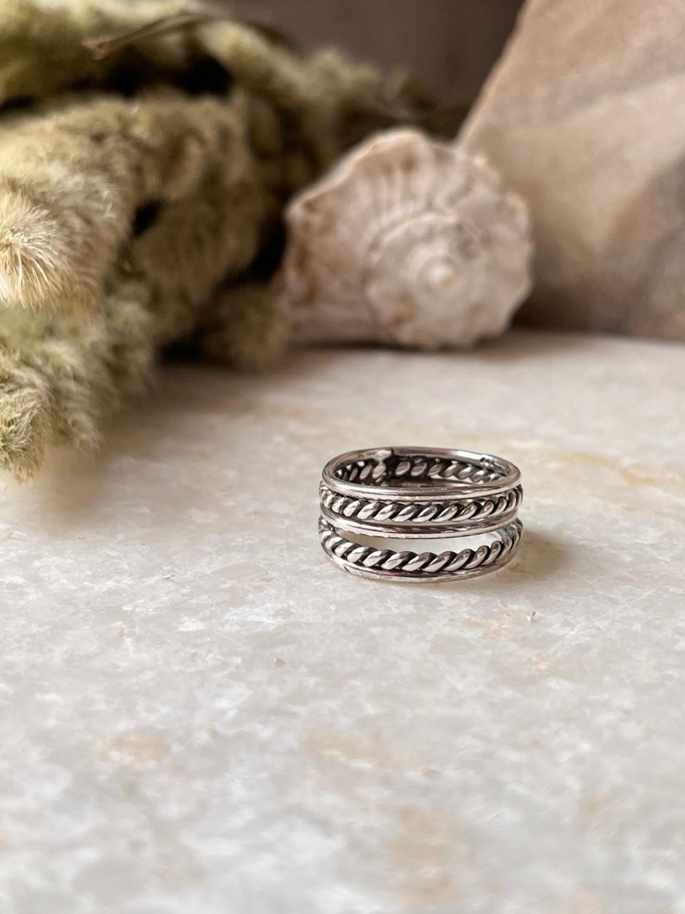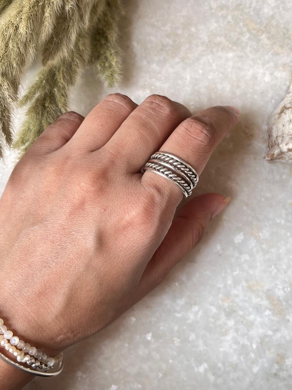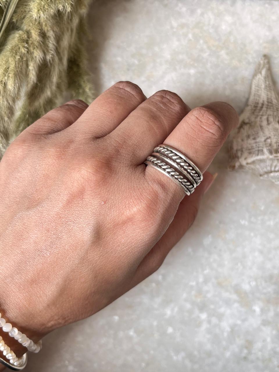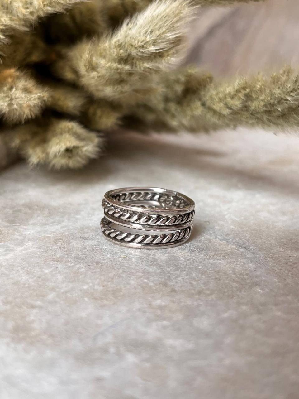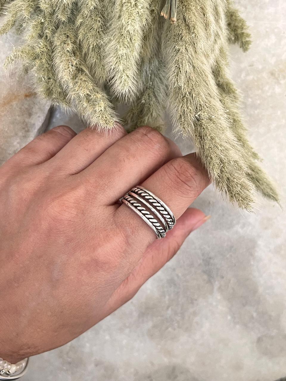 Rope & Plain Stacked Band 925 Sterling Silver Ring