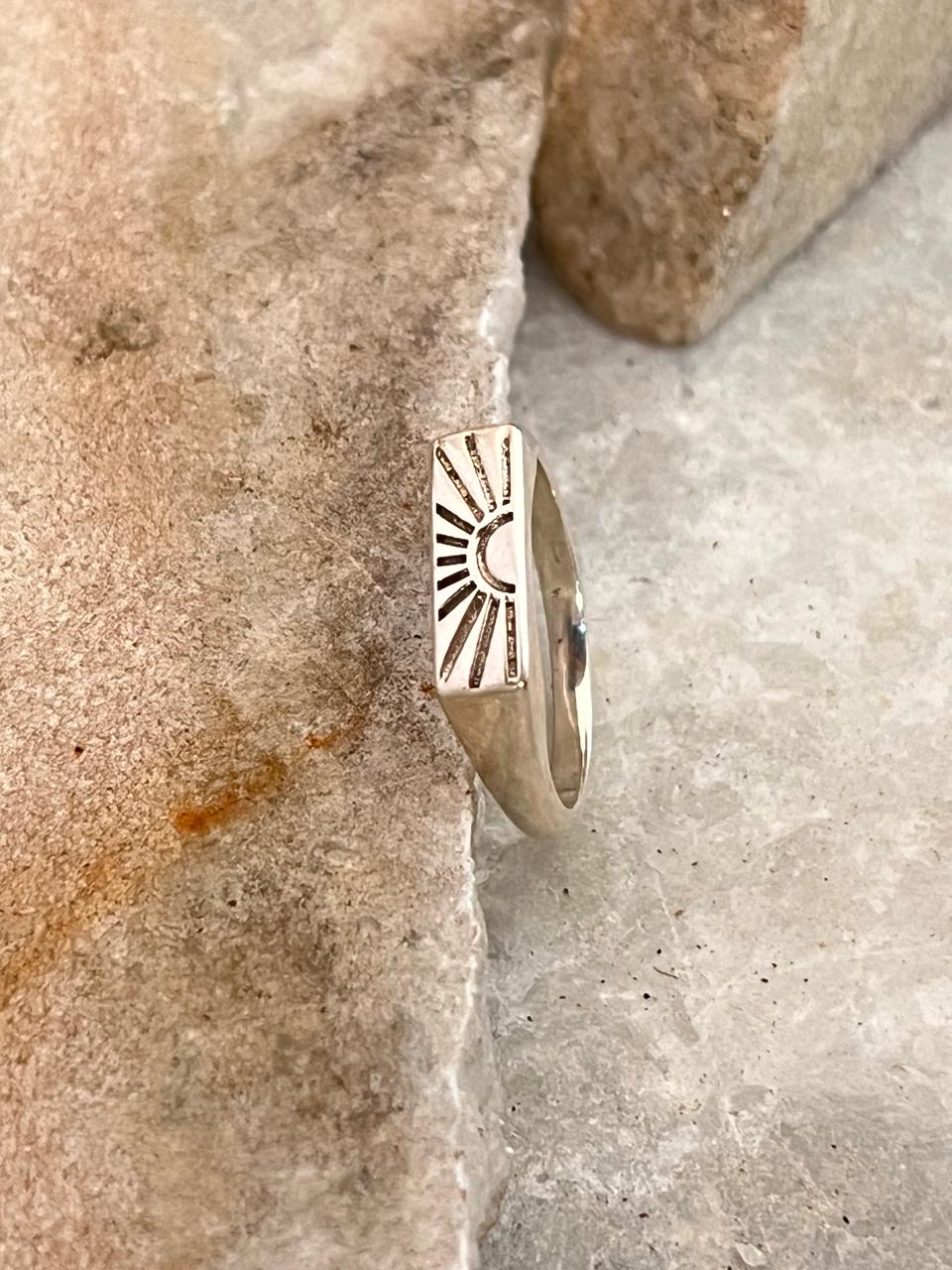 This Sun Engraved Signet Silver Ring is a must-have for any jewelry collection. Made of pure 925 silver and hallmarked for authenticity, this ring features a beautiful sun engraving, adding a touch of warmth and positivity to any outfit. With intricate detailing and a timeless design, this ring is sure to make a statement.