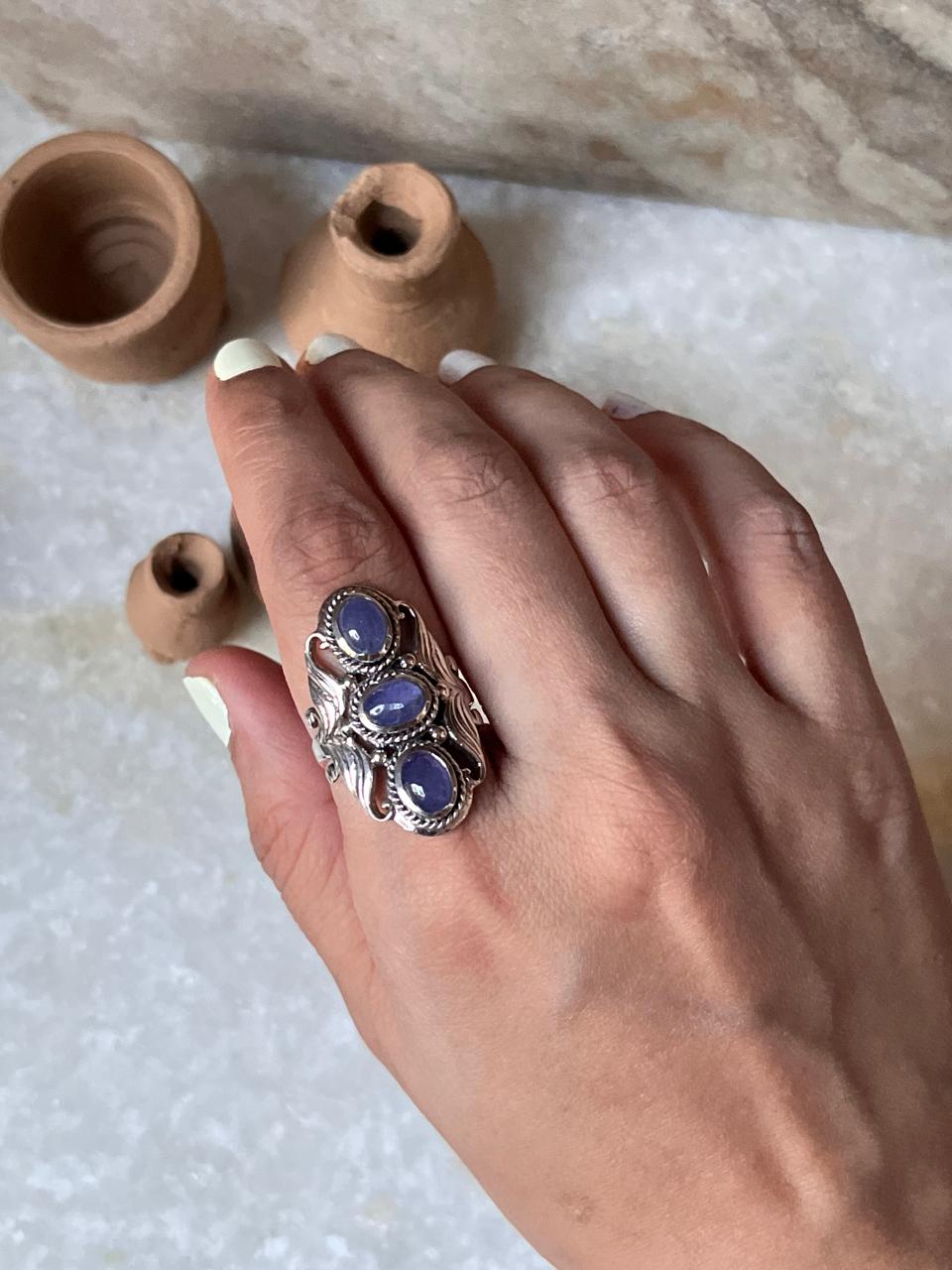 This Tanzanite 3 Stone Statement Silver Ring is a stunning piece that exudes elegance and sophistication. Crafted with three beautiful Tanzanite stones, this ring is sure to make a statement and add a touch of luxury to any outfit.