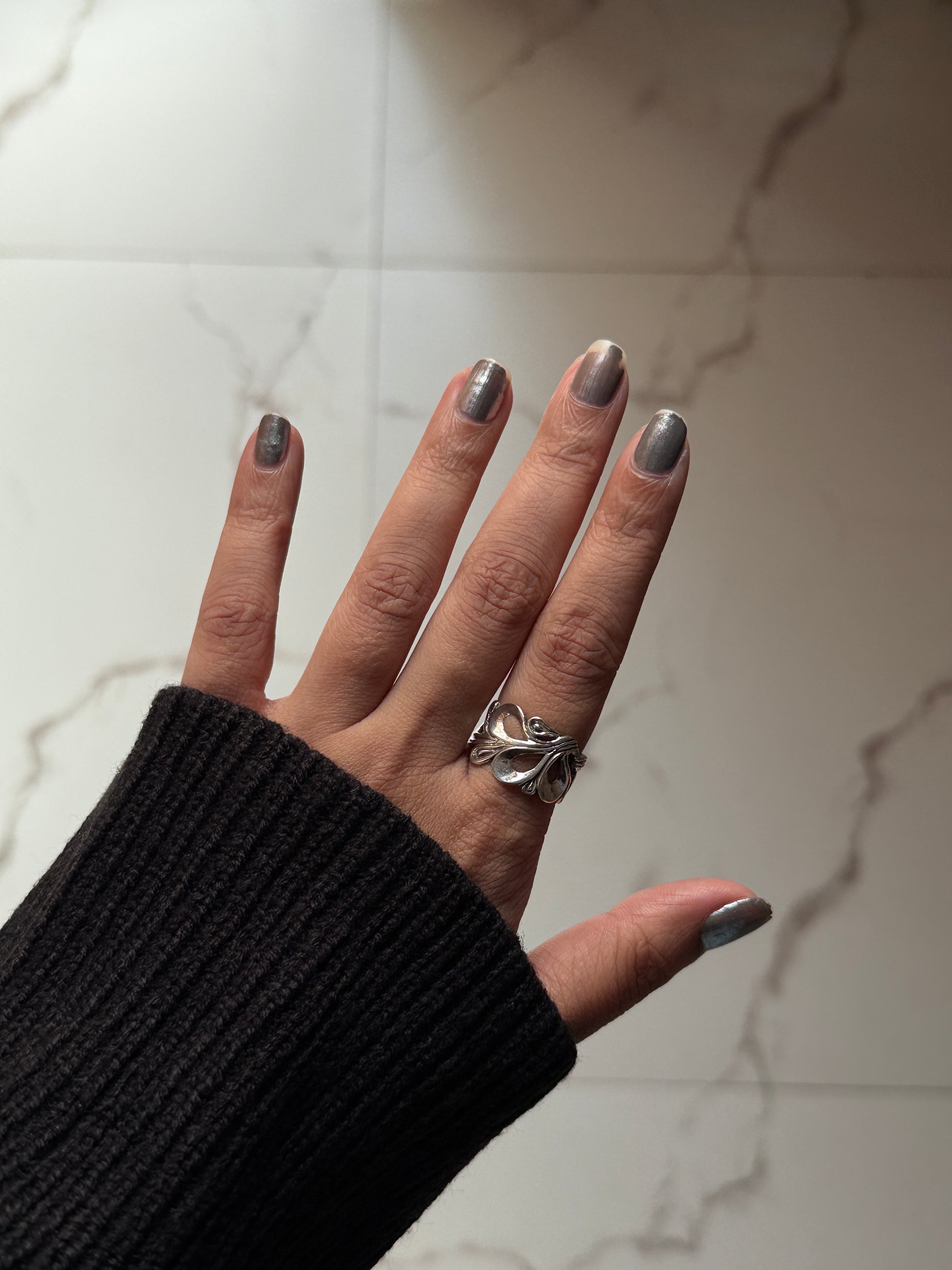 This ring combines the elegance of vintage craftsmanship with a substantial presence, creating a statement piece that exudes timeless sophistication and artistry.
