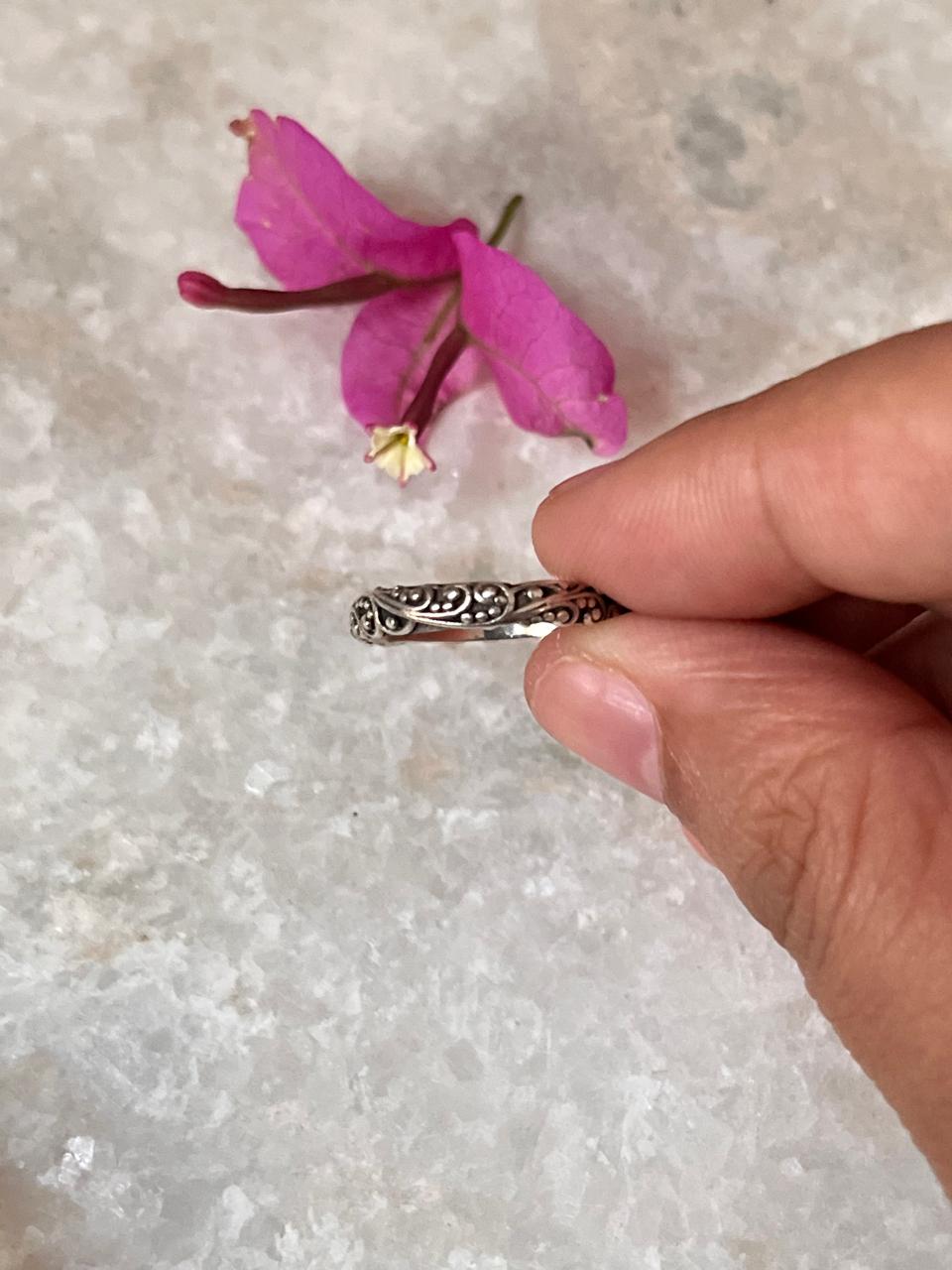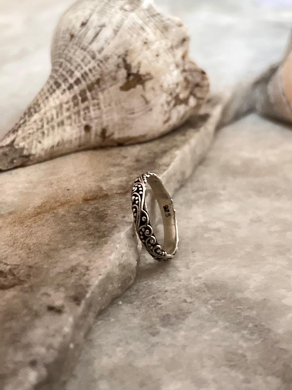 pure silver 925 hallmarked - Thin vintage motif silver band ring