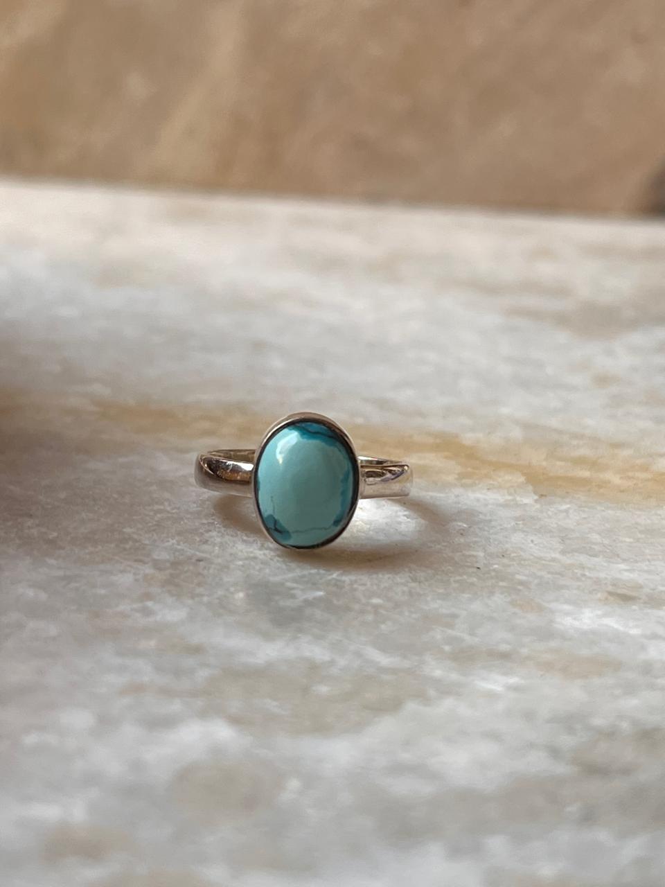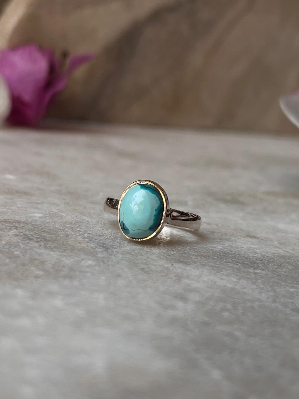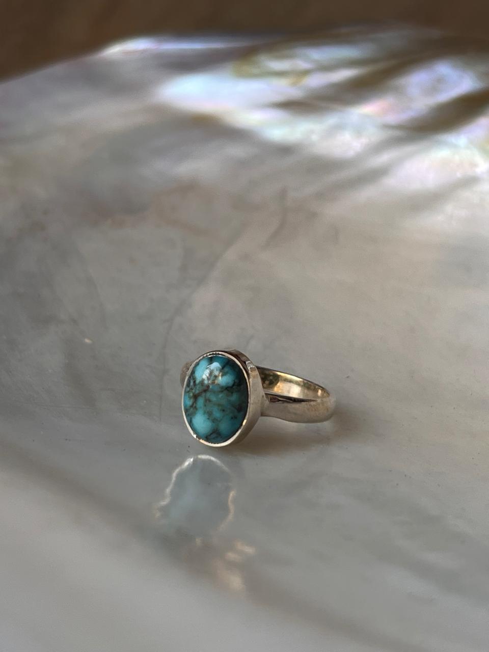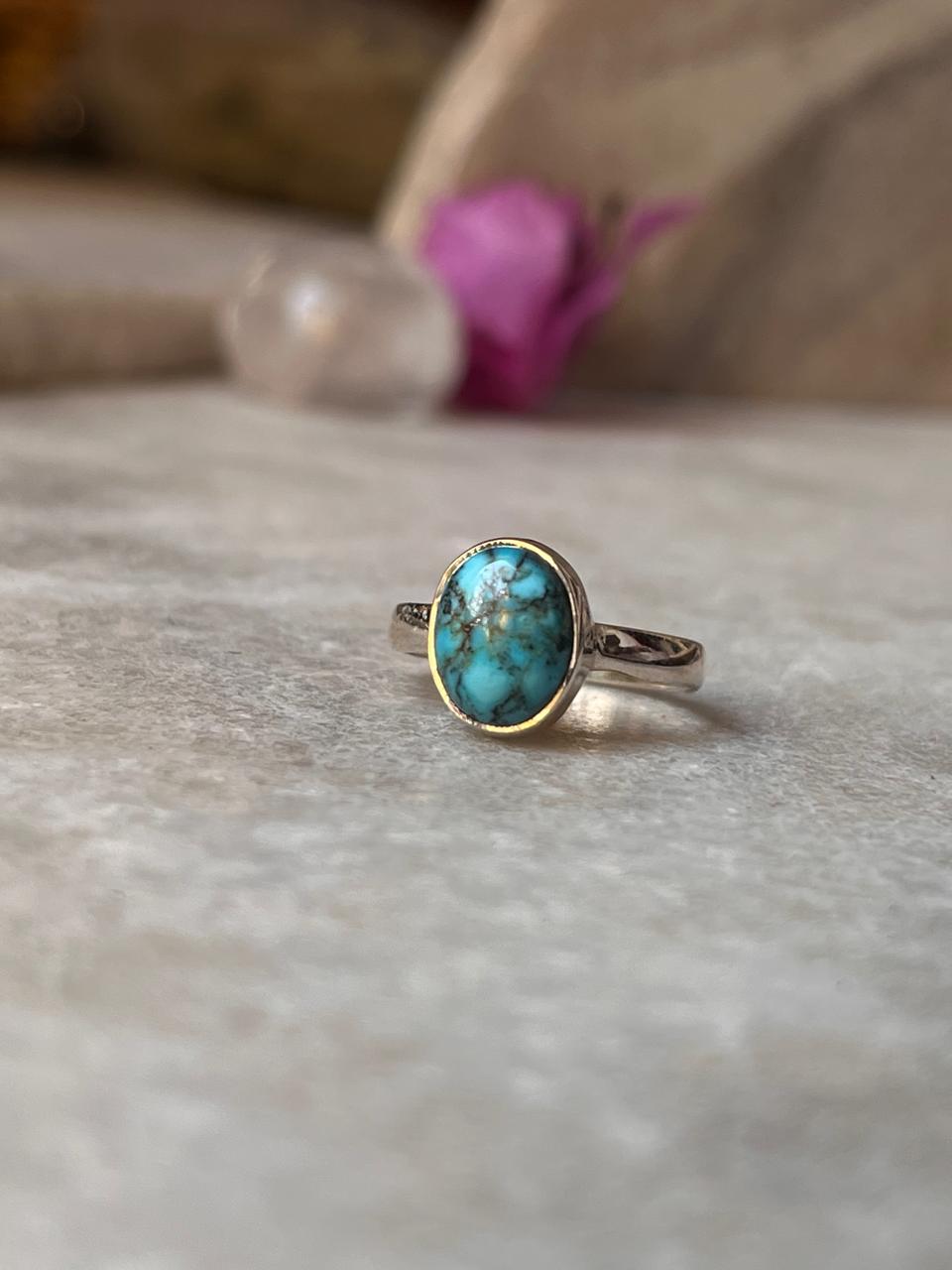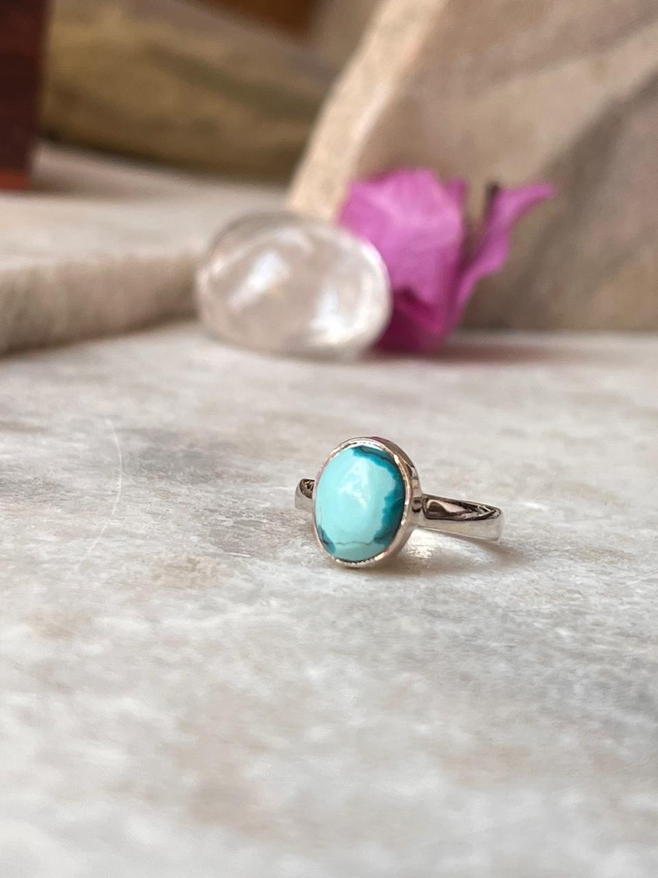 Update your jewelry collection with our Natural Tibet Turquoise Oval Silver Ring. Made with authentic turquoise from Tibet, this silver ring adds a touch of natural beauty to any outfit. The oval shape creates a unique look, while the silver band provides durability. Enhance your style with this stunning piece.