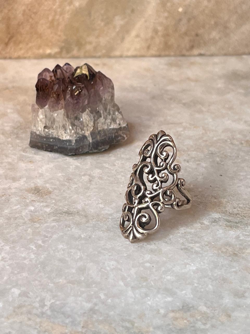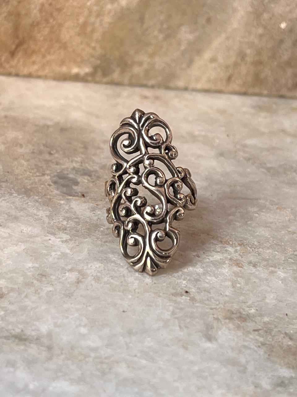 Vintage Boho Fleur De Lis 925 Sterling Silver Ring