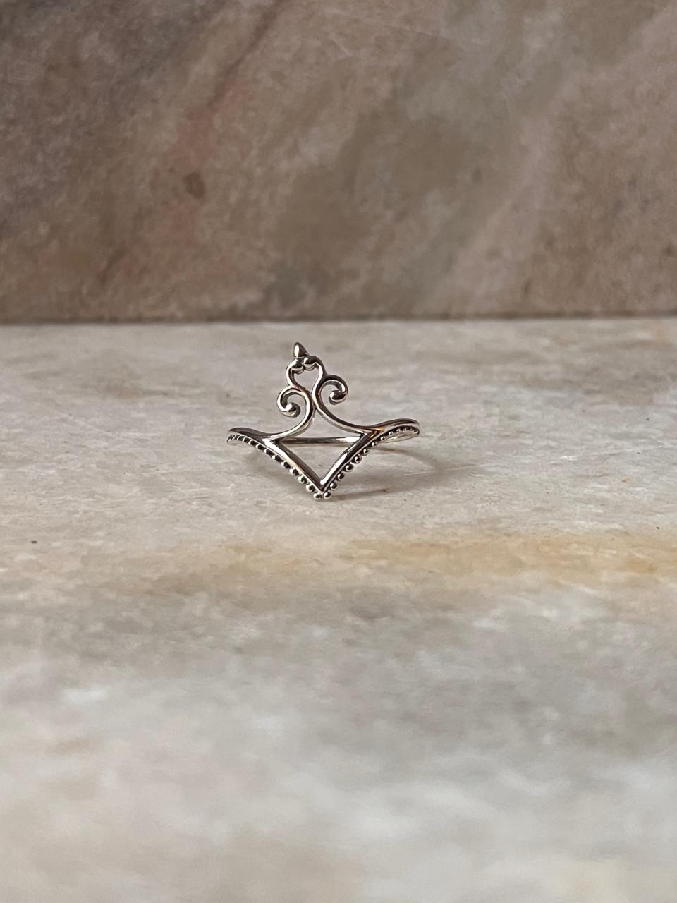 A vintage V stack ring symbolizes classic elegance, dynamic design, and personal strength.