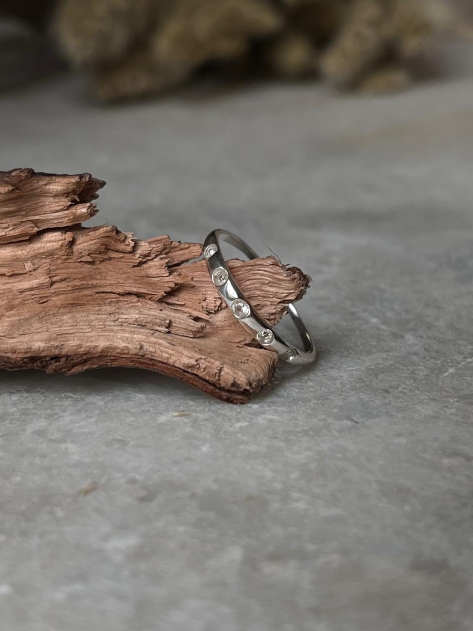 White Topaz Eclipse Band 925 Sterling Silver Ring