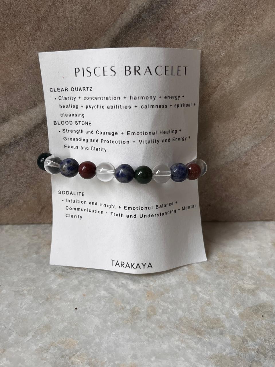 The Zodiac Pisces 2 Crystal Bracelet 8MM features 8MM crystals specially selected to align with the traits of Pisces, the intuitive and compassionate water sign. Known for its deep connection to emotions and spirituality, this bracelet typically incorporates stones such as amethyst (for spiritual growth) or aquamarine (for calm and clarity), enhancing the Piscean qualities of empathy, intuition, and creativity. The stones are carefully chosen for their energetic properties, set on an elegant design that complements the sensitive and artistic nature of Pisces. Perfect for those born under this sign or anyone seeking a deeper connection to their inner self, this bracelet brings both beauty and meaningful energy.